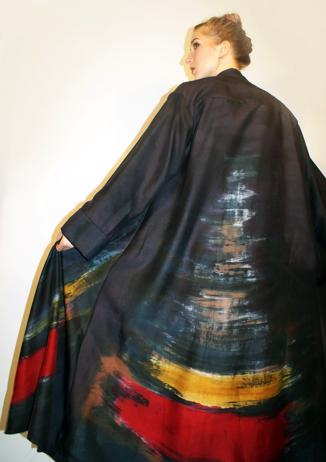 Beautiful fabrics by Antoni and Alison at LFW. They look hand-painted and are gorgeous colours on simple designs. Not plus-sized but there are designer/artists who will make bespoke items with painted fabrics, if you contact them, or many offer scarves, wraps, shawls which anyone will be able to wear. One of my favourites in the UK is Carole Waller. Enjoy.