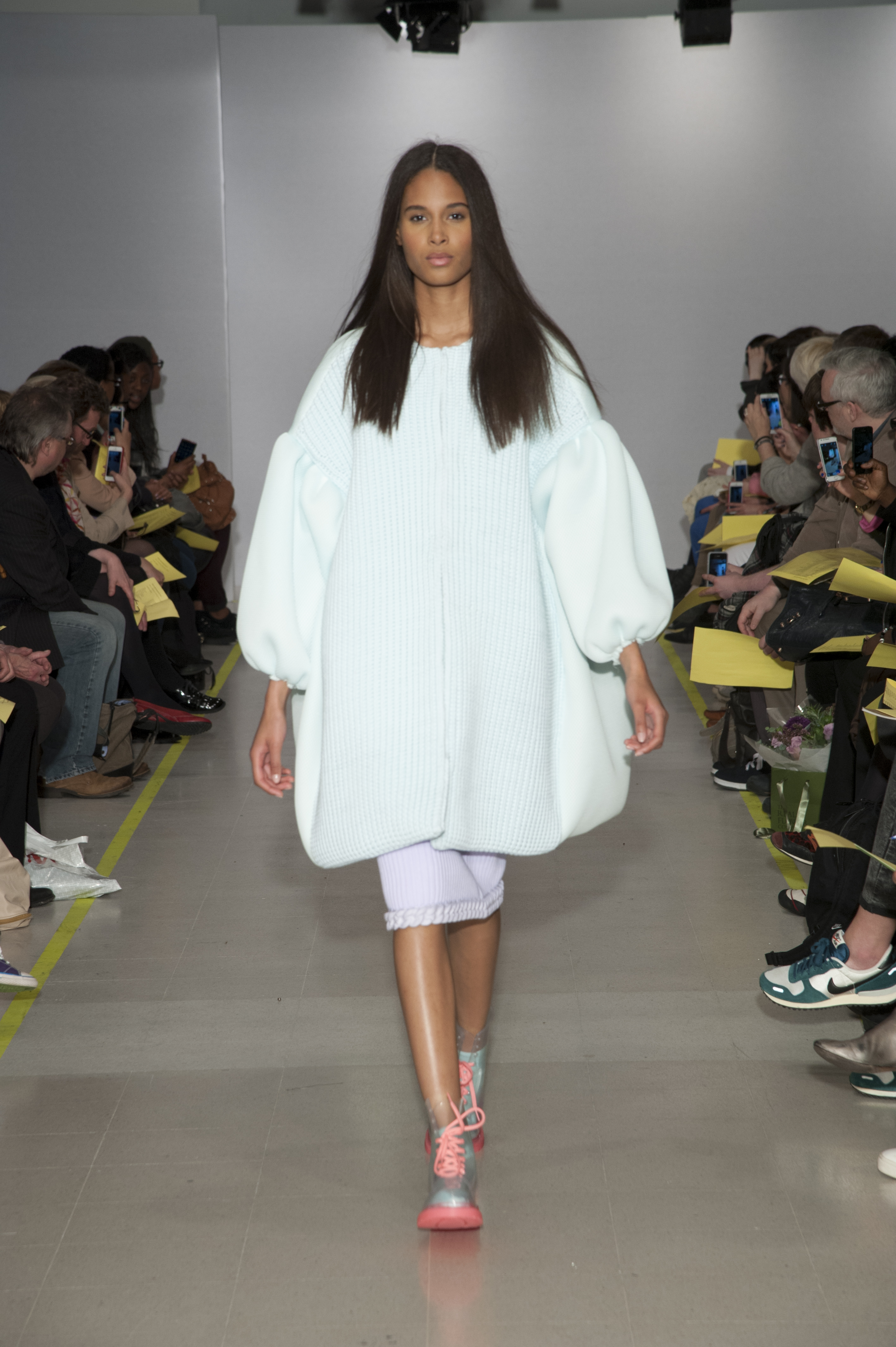 Xiao Li’s candy coloured marshmallow shapes and balloon sleeves were topped off with clear boots reminiscent of Dr Martens, completing the silicone-chic aesthetic.